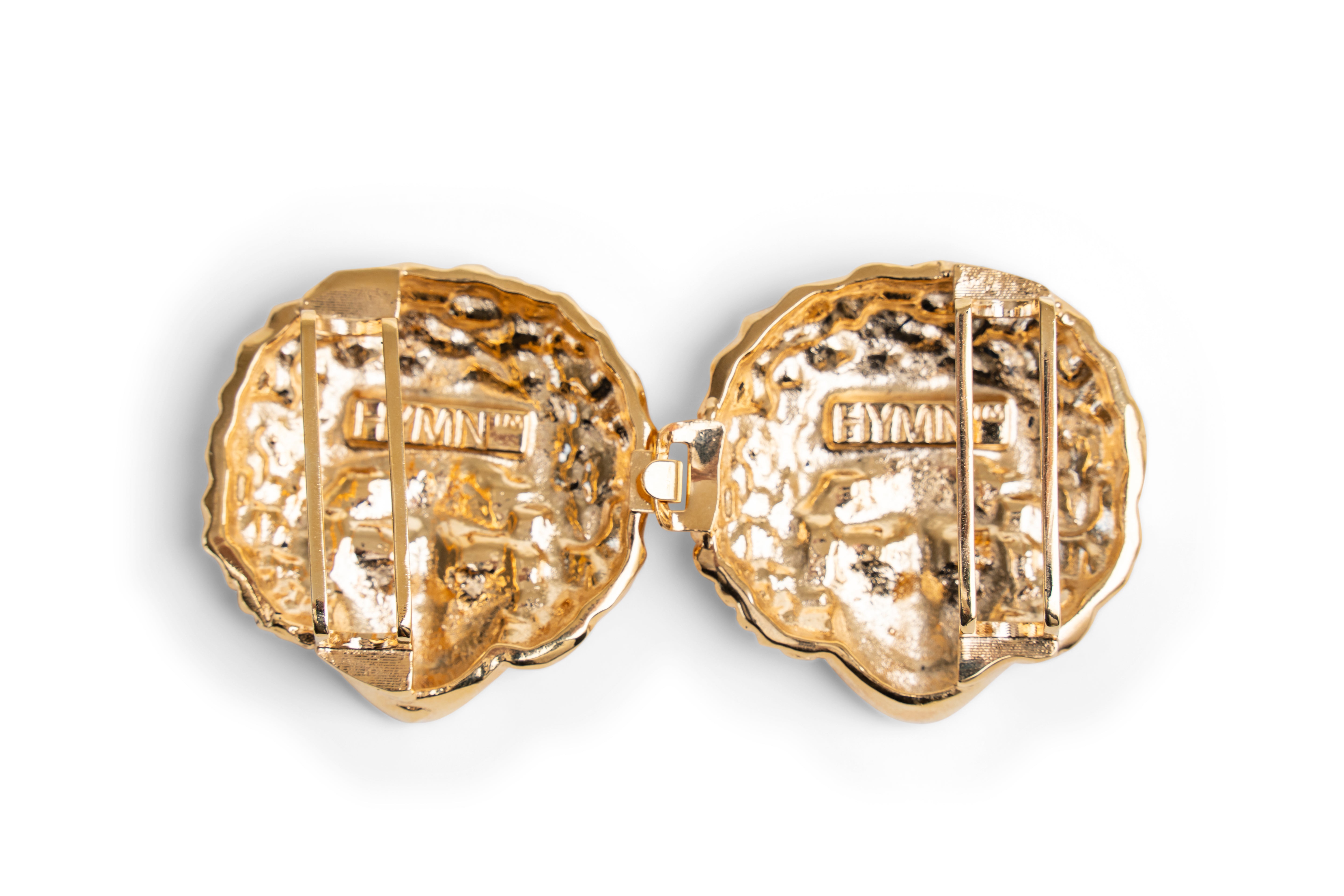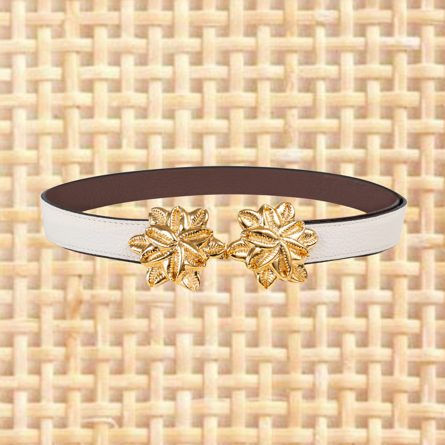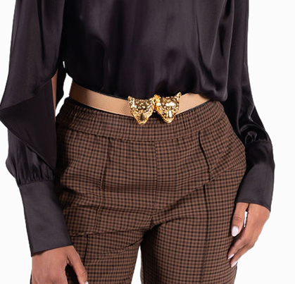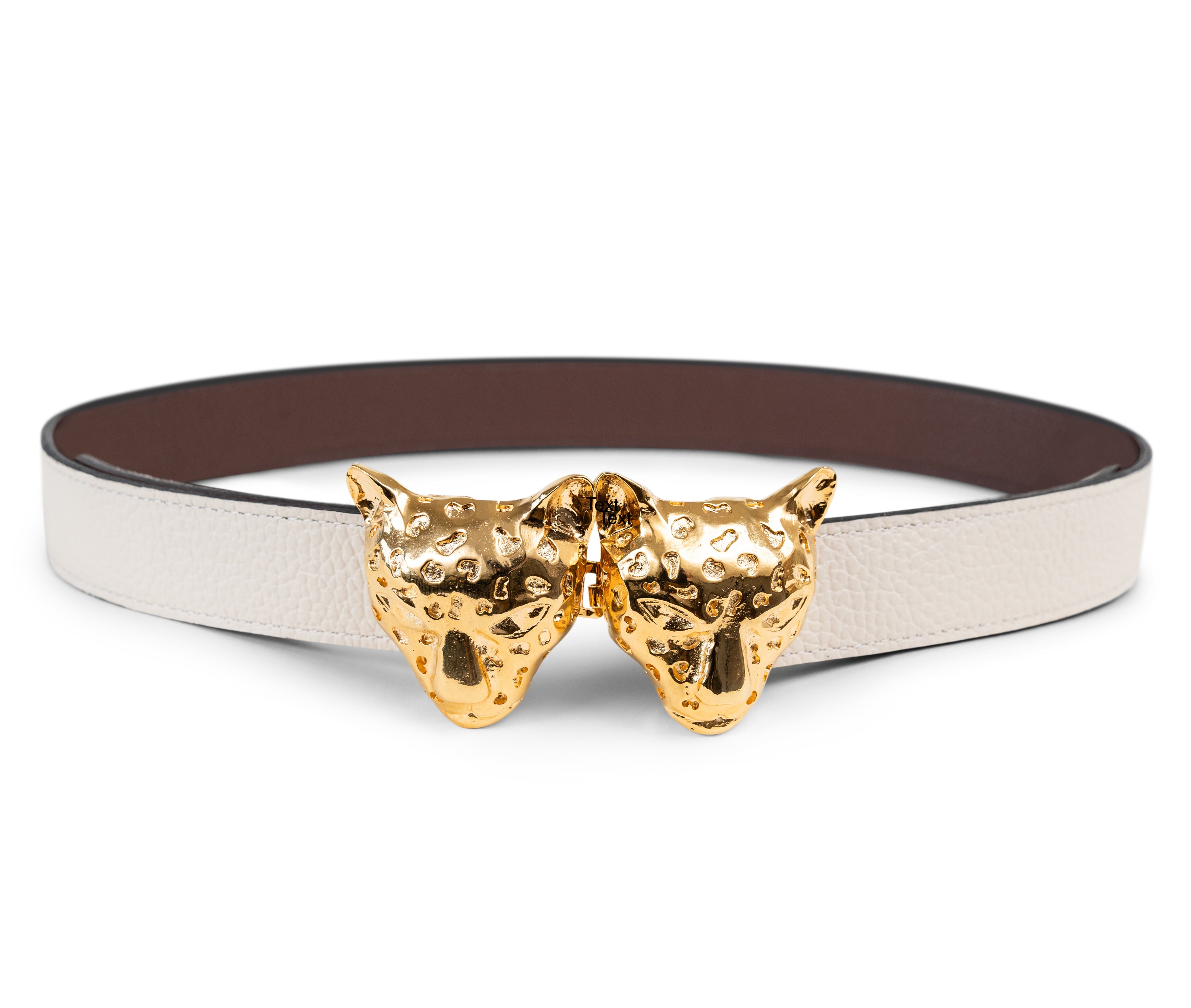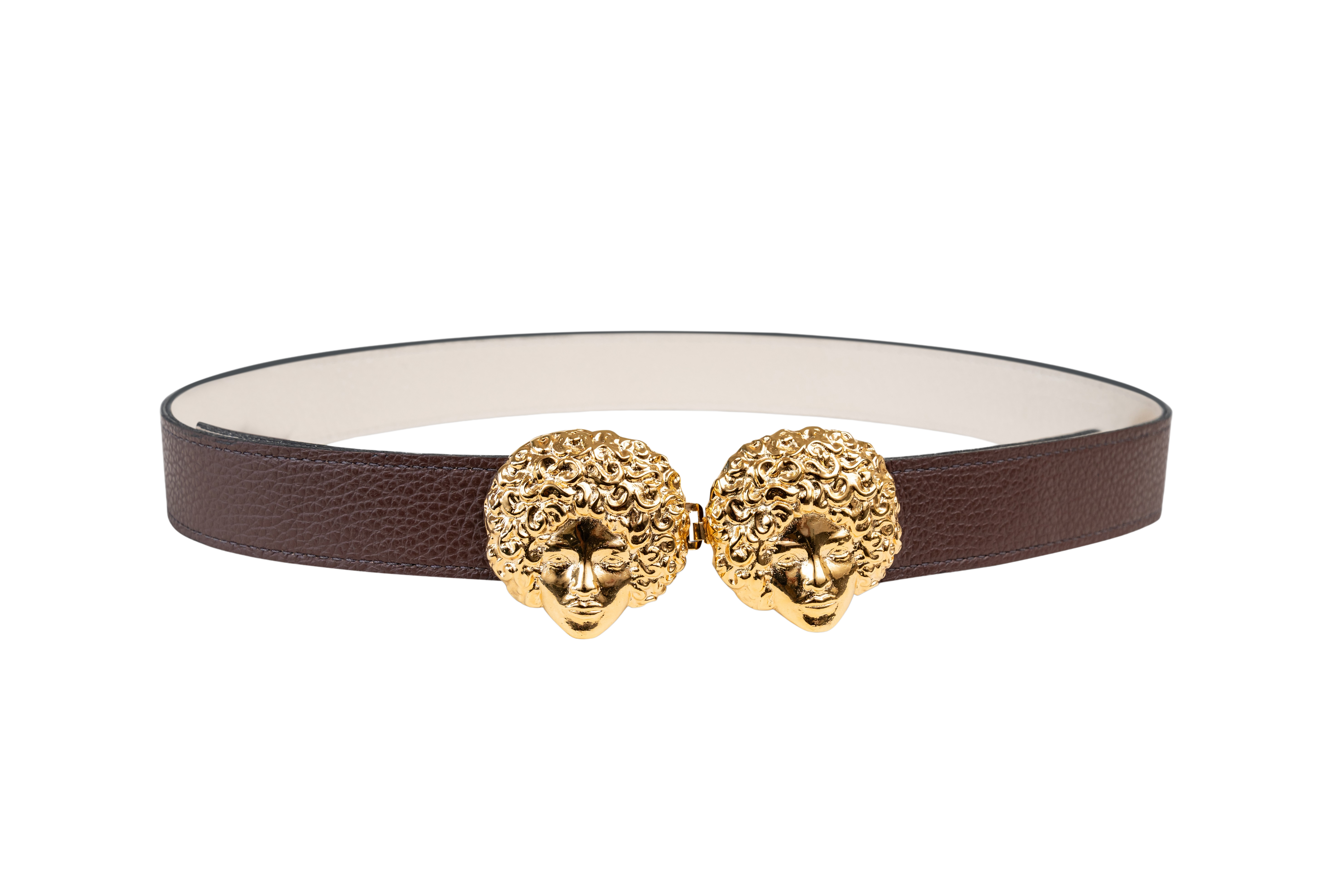Buckles are hand crafted of pewter dipped in 18K gold and belt straps are made of 100% recycled Italian leather.